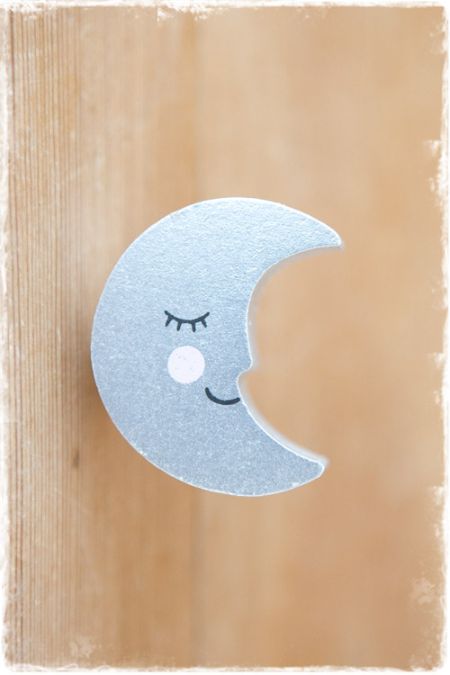 Leuk deurknopje in de vorm van een zilveren maan. Mooi knopje om te gebruiken voor een kastje op een baby- of kinderkamer.